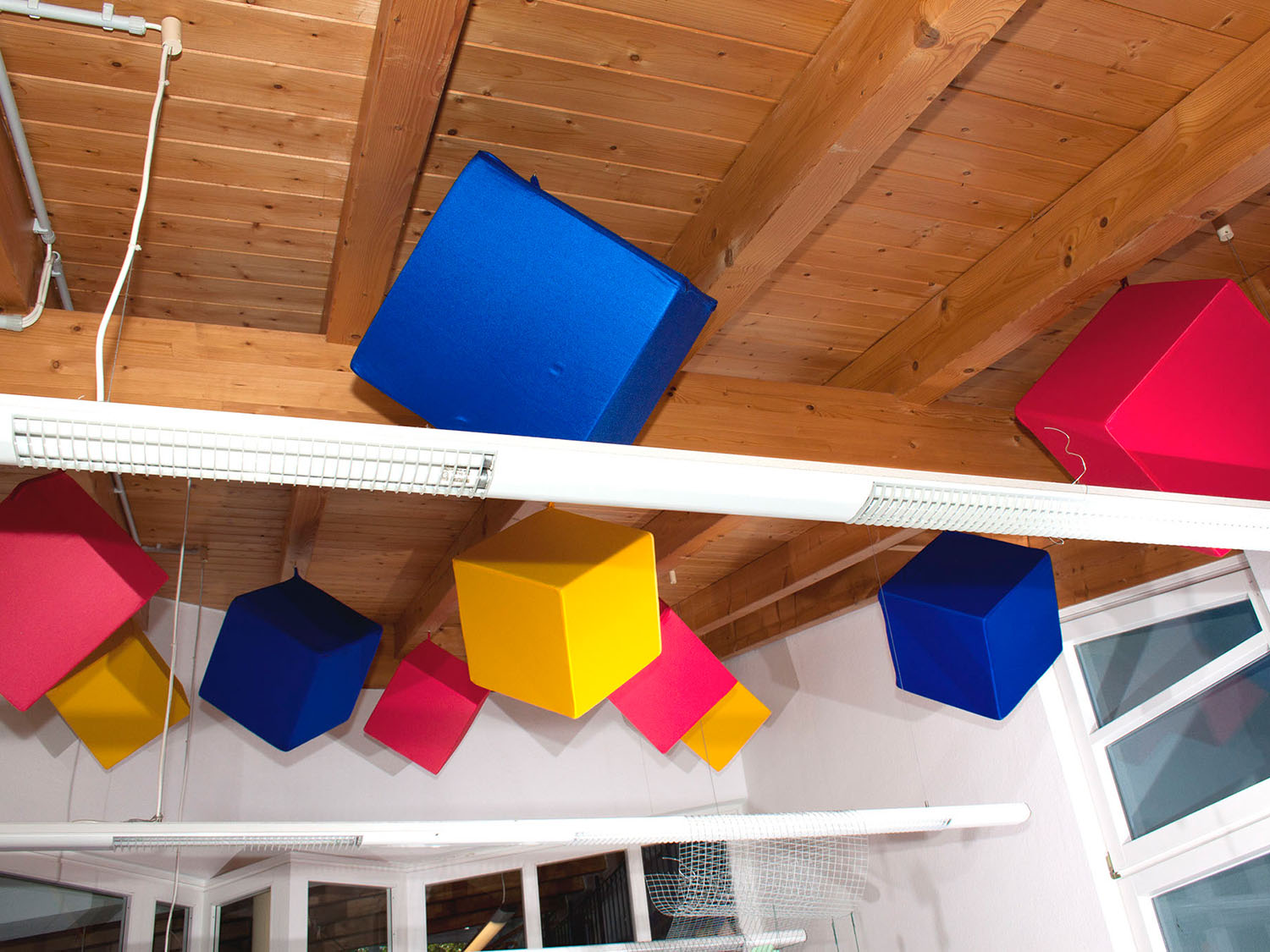 - schallschluckende Elemente für Büros, Fertigungshallen, Gastronomie und Kindergärten