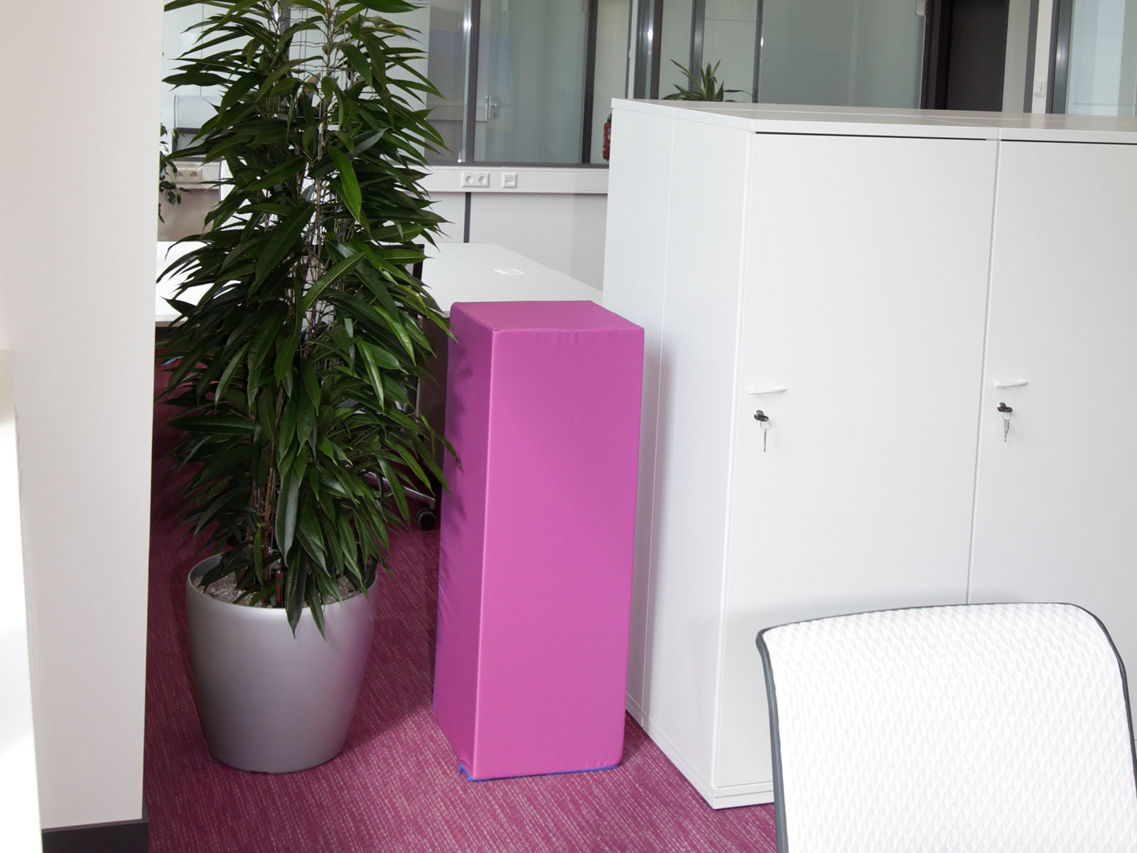 Die flexiblen Würfel sorgen einzeln platziert oder in Gruppen angeordnet für eine angenehme Akustik. Besonders praktisch ist dabei die flexible Handhabung, mit der die Elemente neu angeordnet werden können und damit spielend veränderten Anforderungen entsprechen.
